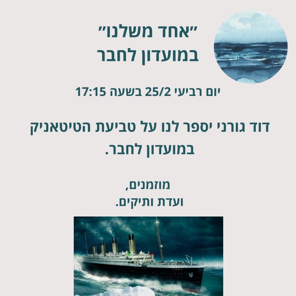 יום שני הבא 23.02 בשעה 17:00 באולם בית העם